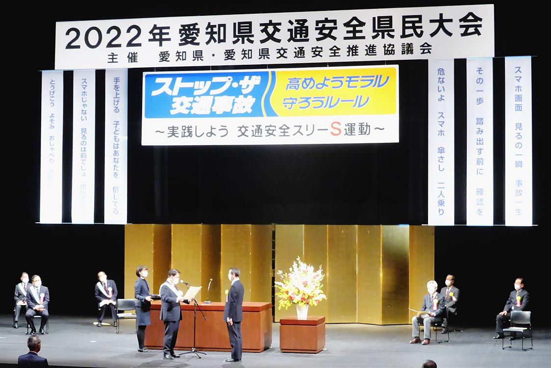 【名古屋】愛知県交通安全推進協議会(会長=大村秀章愛知県知事)は、名古屋市東区の愛知県芸術劇場で「愛知県交通安全県民大会」を開催した=写真。県内の交通安全活動に取り組む・団体の代表ら160人が参加し、大村会長が交通安全に功労のあった個人・...