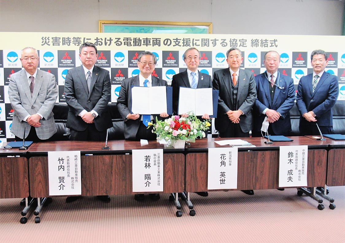 【新潟】三菱自動車工業と三菱系販社5社は、新潟県と「災害時等における電動車両の支援に関する協定」を締結した。同県が災害時に電動車を活用した電力確保の協定締結、県内の三菱系販社が合同で自治体と災害時の協力協定は、どちらも初めてとなった。 協...