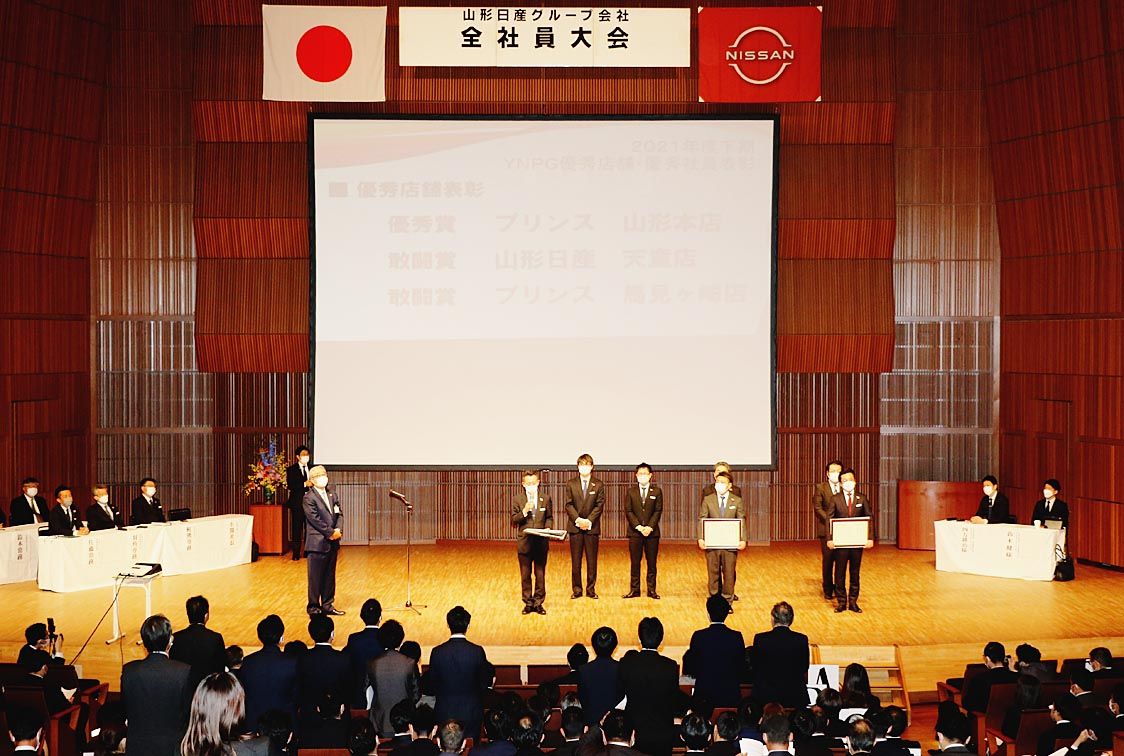 【山形】山形日産(小関眞一社長)を中核に事業を展開する山形日産グループは4月26日、山形市で「2022年上期全社員大会」を開催した=写真。グループ会社の社員約450人が出席し、22年度の経営計画や目標、活動方針を共有した。また、21年度下...