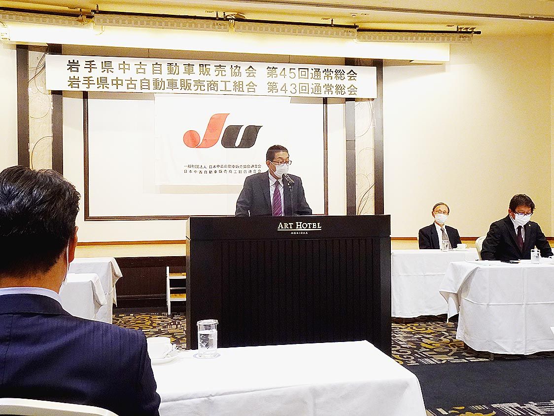 【盛岡】岩手県中古自動車販売協会・商工組合(JU岩手、小原隆孝会長・理事長)は、盛岡市内のホテルで通常総会を開催した=写真。出席者は青年部を含めた役員、事務局らに留めた。事業計画では組織力の強化を旗印に、引き続き会員増加活動に力を入れ、会...