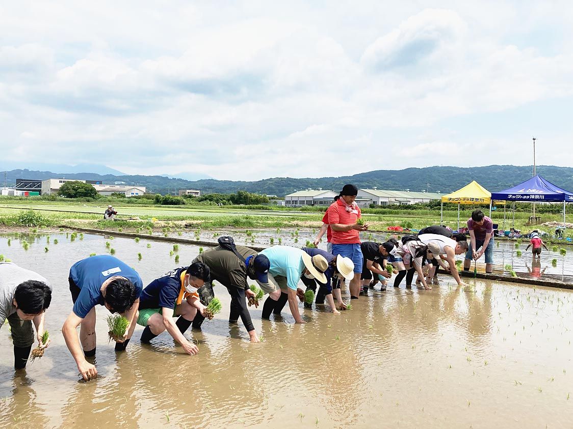 ウエインズグループの神奈川県内3販社は、野生メダカが生息する田んぼの生態系保全活動に協力した。小田原市桑原地区で栽培されている「めだか米」の田植え作業に3社の役員、社員とその家族ら53人が参加し、市民団体のメンバーとともに汗を流した=写真...