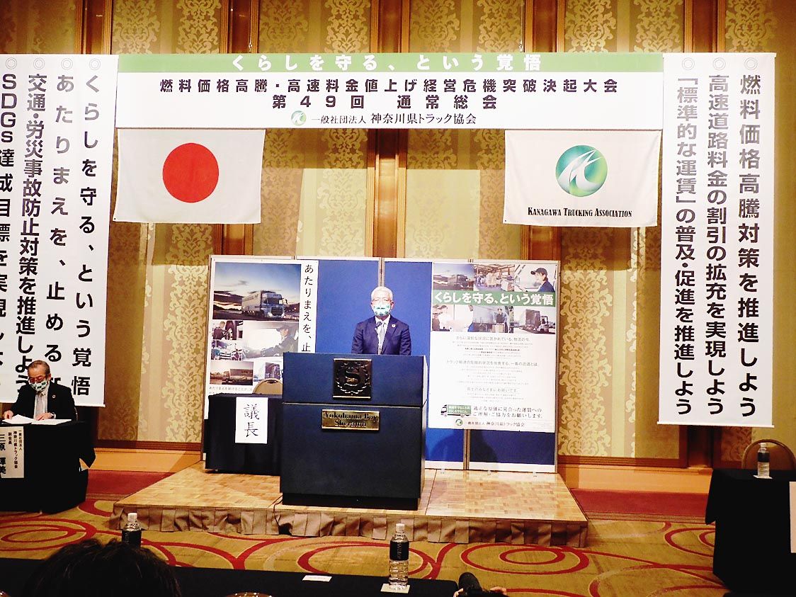 【横浜】神奈川県トラック協会(吉田修一会長)は、横浜市内のホテルで「第49回通常総会」を開催した=写真。任期満了に伴う役員改選では、4期目となる吉田会長の続投が決まった。 吉田会長は、「物が届くことが当たり前になっているが、コロナ禍でも物...