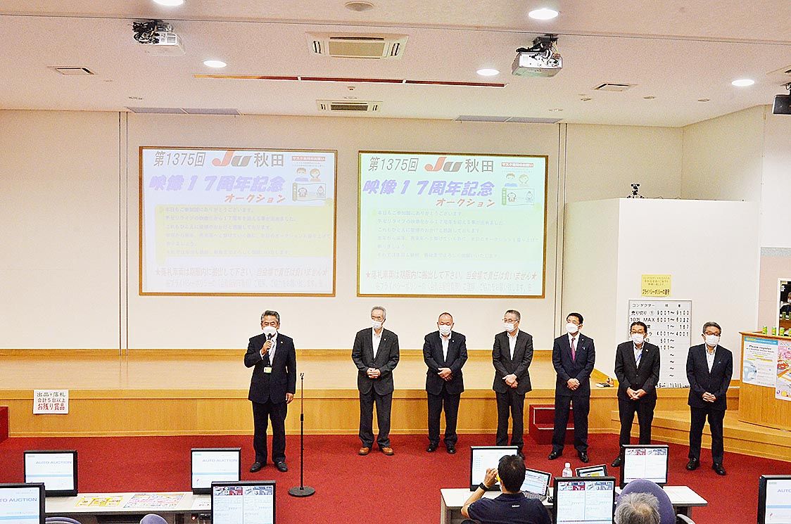 【秋田】JU秋田(藤原寛市理事長)は、秋田市の中古車オークション(AA)会場で「映像17周年記念AA」を開催した=写真。中古車のタマ不足が続く中、目標台数を超える出品を集め、活発な競りが開催された。会場には、JU東北ブロック各県の理事長も...