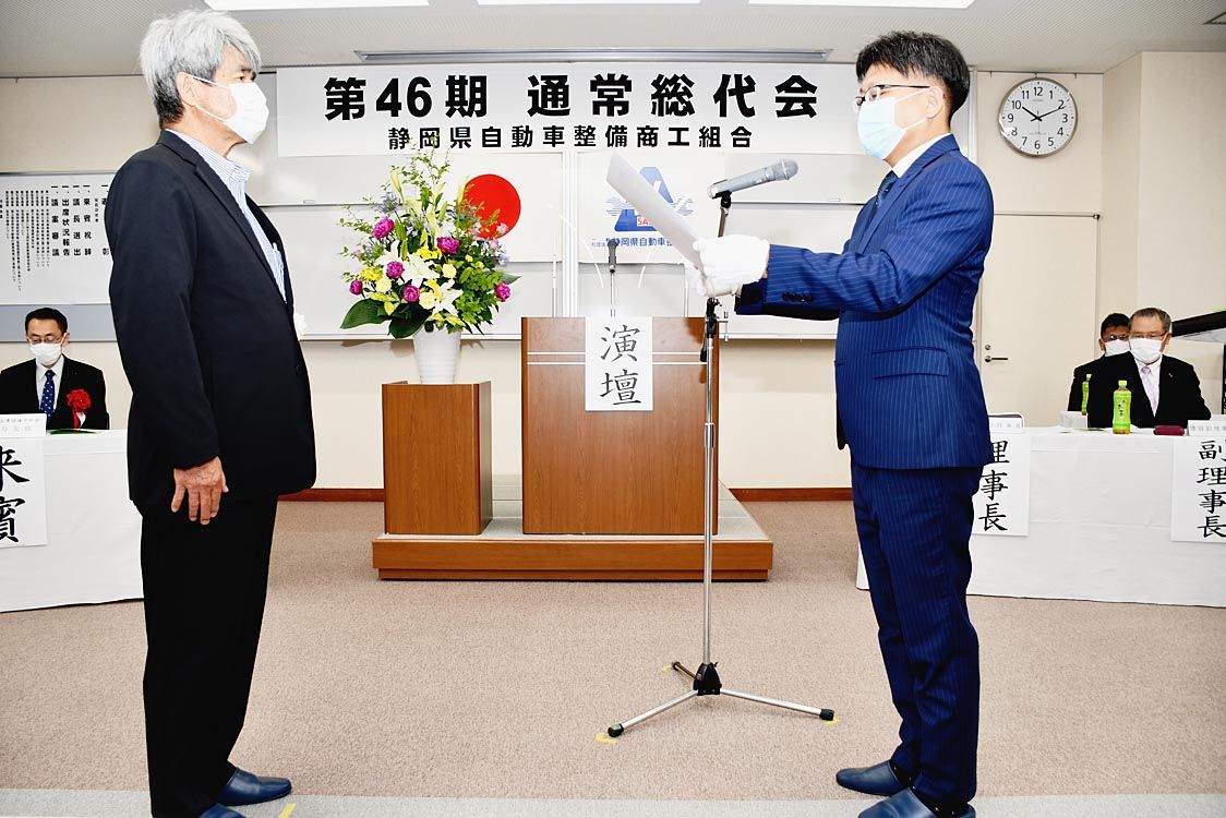 【静岡】静岡県自動車整備商工組合(静整商、河田憲一郎理事長)は6月22日に開催した通常総代会の席上、静整商理事長表彰式を執り行った=写真。受賞者は次の通り(敬称略、カッコ内は所属会社)。 〈役員功労者表彰〉 役員在任15年=髙橋晴夫(高橋...