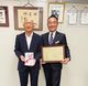 再発防止策を斉藤国交相(左)に手渡す日野の小木曽社長(右)