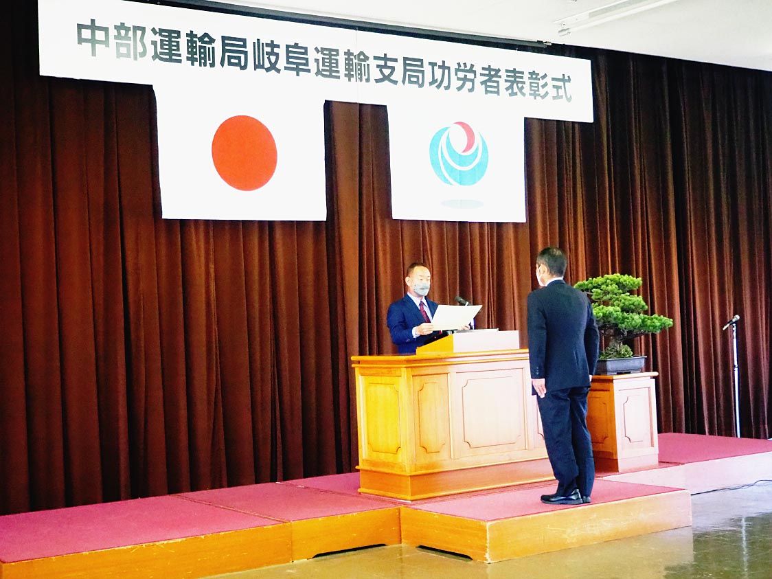 【岐阜】岐阜運輸支局は、岐阜市の自動車会館で2022年度の運輸関係功労者表彰式を行った=写真。県内の自動車関連団体、企業の役員や業務に精励した従業員ら34人を表彰し、古橋靖弘支局長が表彰状を手渡した。 古橋支局長は受賞者に対して「表彰を機...