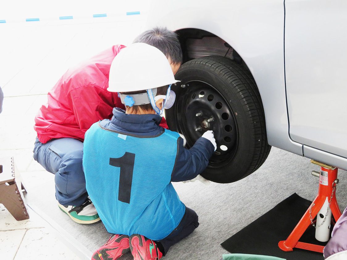 広島県自動車整備振興会(岡本精二会長)はこのほど、広島市佐伯区の大型商業施設で親子を対象にした自動車整備士の体験イベントを開催した=写真。小学生以下の子どもらを対象にするキッズコースはタイヤ交換を行い、保護者コースでは実際の風景と3Dホロ...