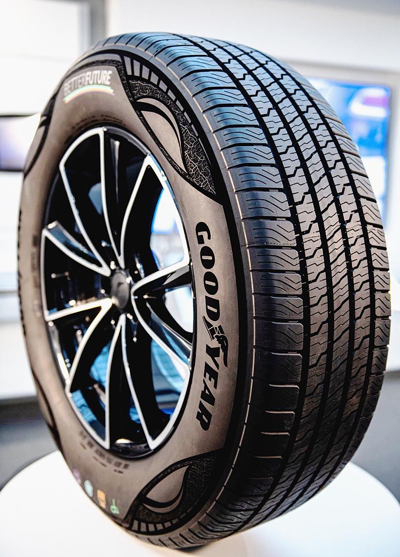 グッドイヤーは、サステイナブル素材を9割使い、公道走行が可能なタイヤを開発したと発表した。同社は2030年までにサステイナブル素材100%のタイヤを実用化する目標を持つ。まず年内に使用率7割のタイヤを市販する予定だ。