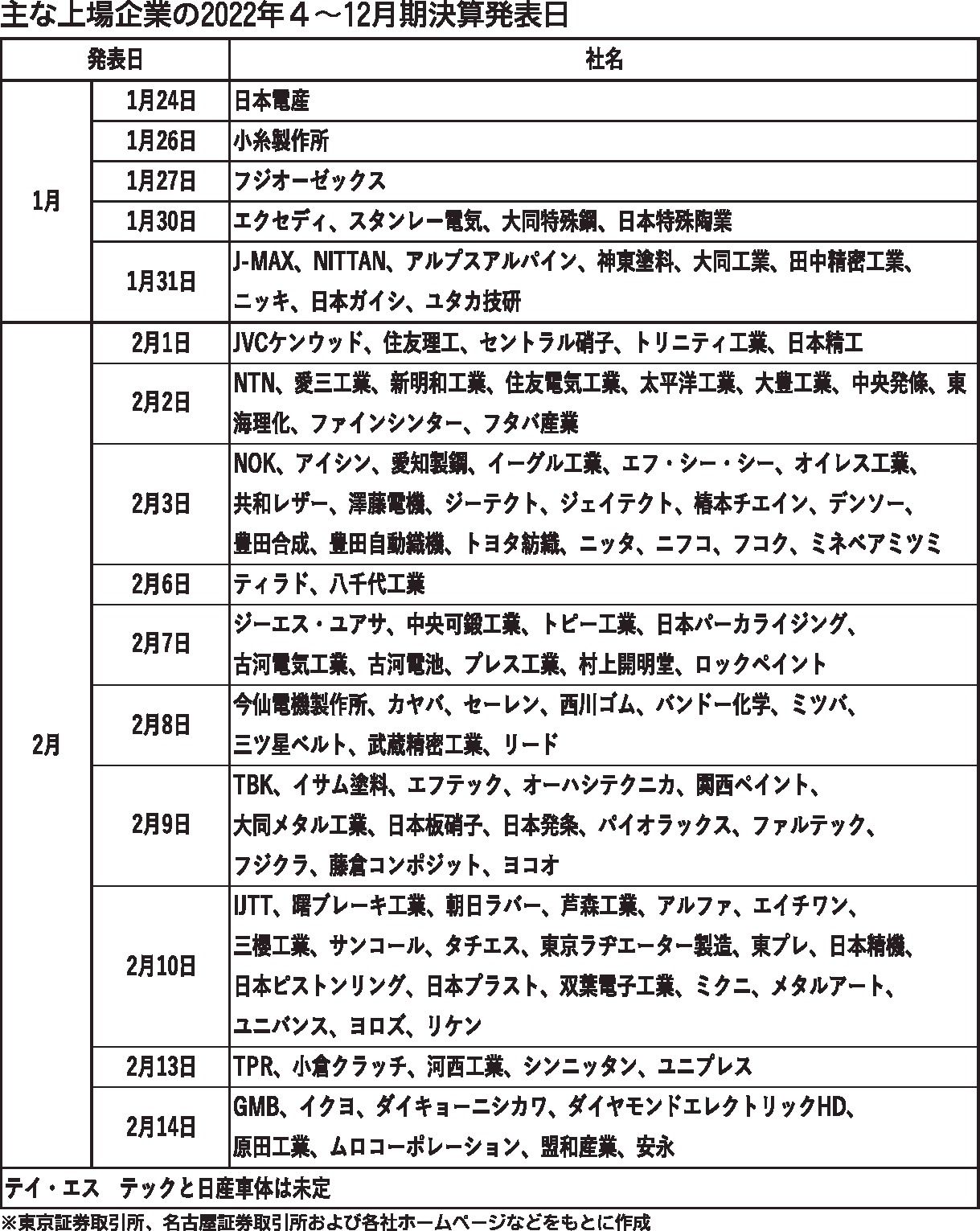 〈主な上場企業の2022年4~12月期決算発表日〉