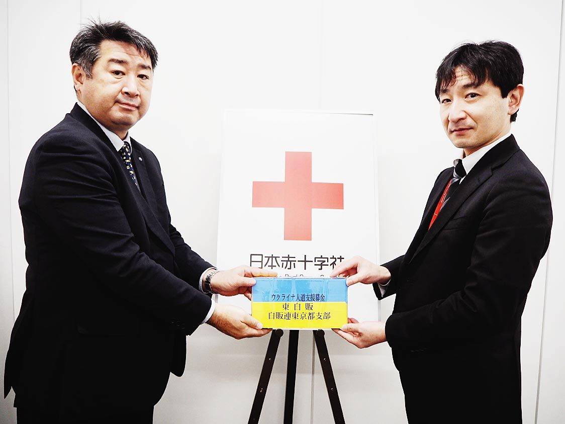 東京自動車販売協会(東自販、加藤和夫会長)は、ウクライナにおける軍事侵攻で被害を受けた被災者への人道支援として、日本赤十字社を通して3万7千円を寄付した=写真。2022年5月から12月にかけて、代表者会議や各委員会、親善野球大会などで「ウ...
