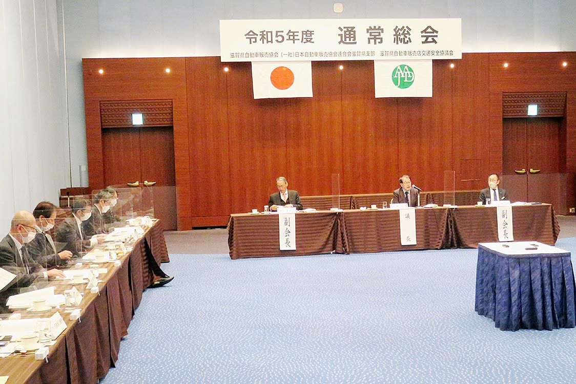 【大津】日本自動車販売協会連合会(自販連)滋賀県支部(中嶋善夫支部長)は、大津市のホテルで「定例代表者会議&令和5年度通常総会」を開催した=写真。定例代表者会議では各委員会の報告や関連団体の活動報告を行い、通常総会では22年度の事業と決算...