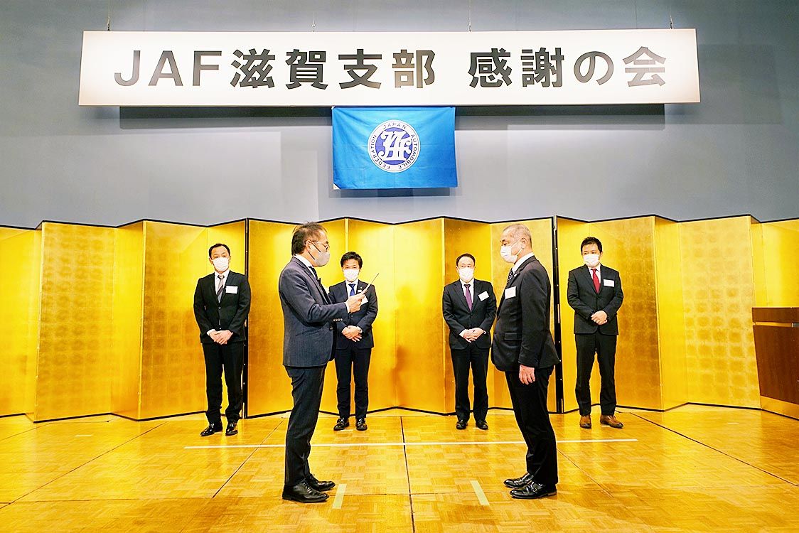 【大津】日本自動車連盟(JAF)滋賀支部(小谷博司支部長)は、大津市内のホテルで「2022年JAF滋賀支部 感謝の会」を開催し=写真、会員増加に貢献した新車ディーラーや個人に感謝状を贈呈した。 会は16日に開いた。冒頭、小谷支部長は「20...