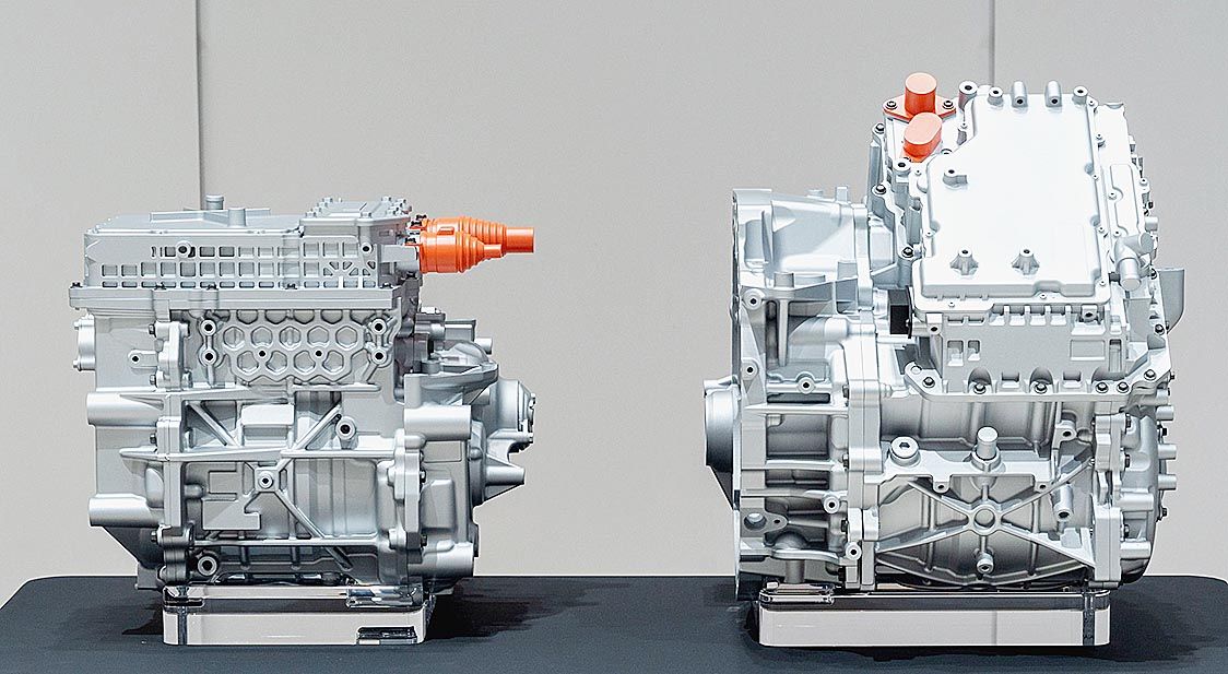 21年11月に公表した長期ビジョン「アンビション2030」で開発計画を示していた新型の電動パワートレインの試作品を公開した。eアクスル単体のEV用は「3in1」、eアクスルに発電機と増速機を組み合わせたeパワー用は「5in1」と呼ぶ。