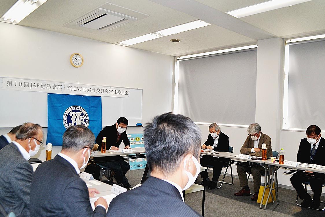 【徳島】日本自動車連盟(JAF)徳島支部は、同支部で「第18回交通安全実行委員会 常任委員会」(委員長=奥嶋政嗣徳島大学大学院教授)を開き、計7件の提案・要望について検討審議した=写真。 同委員会は、地域のJAF会員や一般ドライバーが日常...
