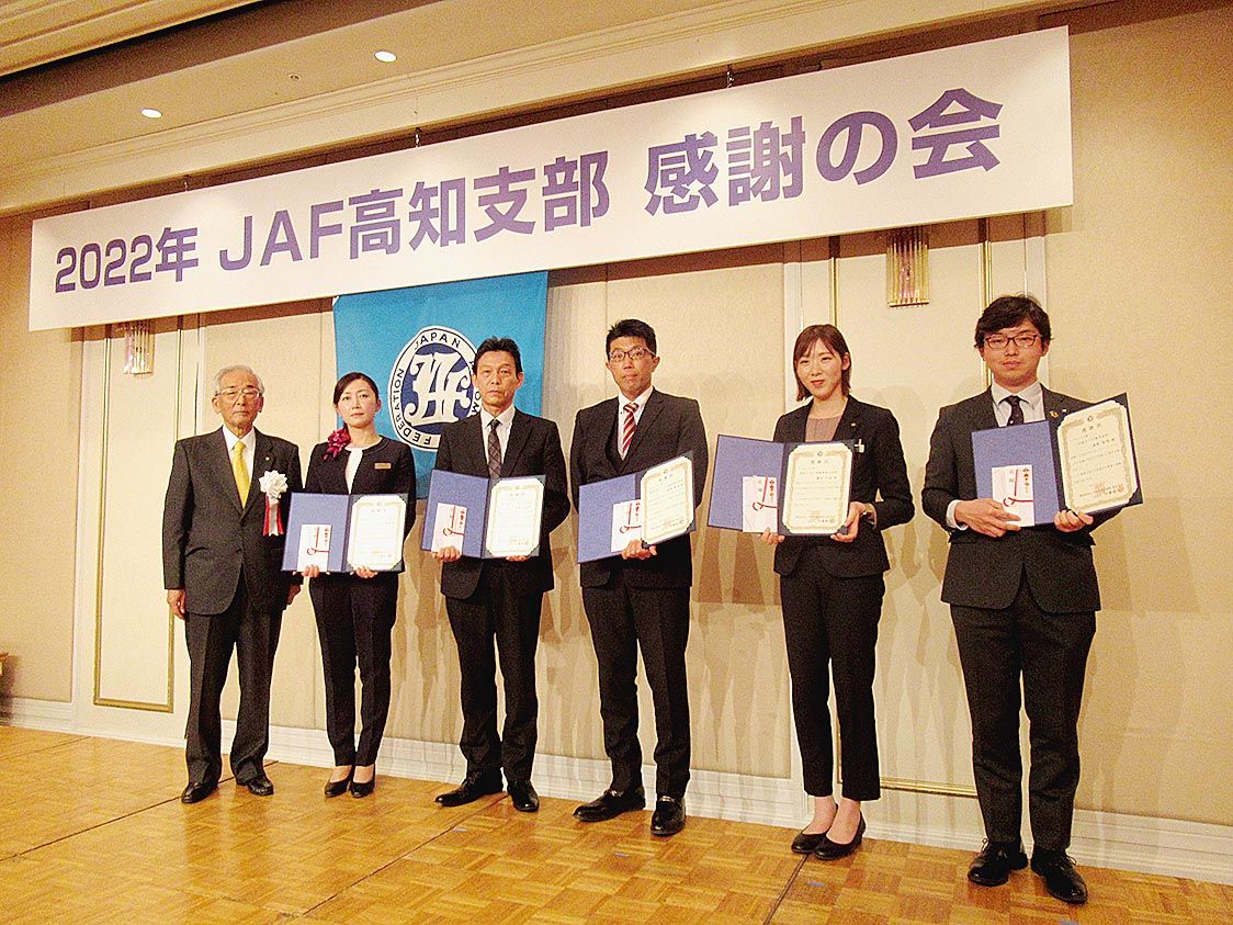 【高知】日本自動車連盟(JAF)高知支部(佐藤誠三支部長)は、高知市内で「2022年感謝の会」=写真=を開き、22年のJAF会員増加促進運動で優秀な成績を収めたディーラー各社と社員を表彰した。同式典はコロナ禍の影響のため、2年ぶりの開催と...