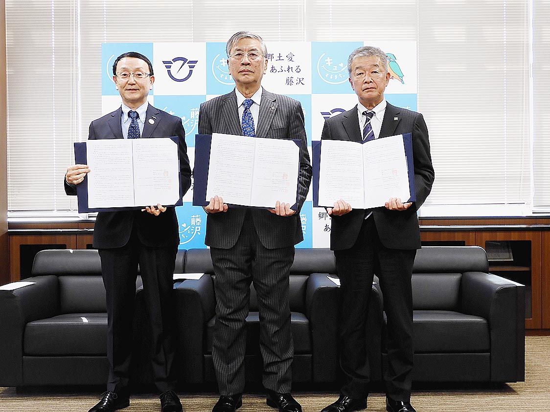 【横浜】神奈川トヨタ(市川英治社長)とウエインズトヨタ神奈川(宮原漢二社長)の神奈川県オールトヨタ販売店は、藤沢市(鈴木恒夫市長)と「災害時における車両等の提供に関する協定」を締結した。有事の際に電力供給が可能な電動車や、車中泊などに使用...