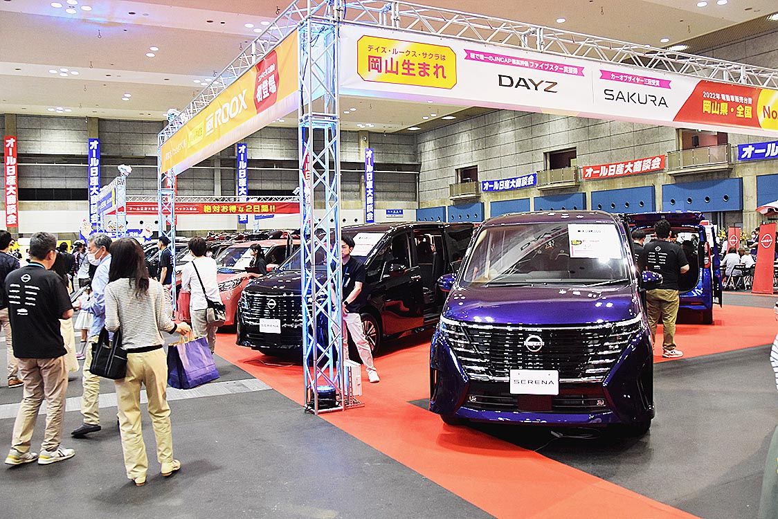 【岡山】日産サティオ岡山(若林信吾社長)と岡山日産(同社長)が、大型イベントを催し=写真、1万人の来場を集め盛況だった。5月中旬から約1カ月間をイベントの期間とし、新車と中古車をあわせて両社で940台の受注を獲得。イベントでは530件の試...