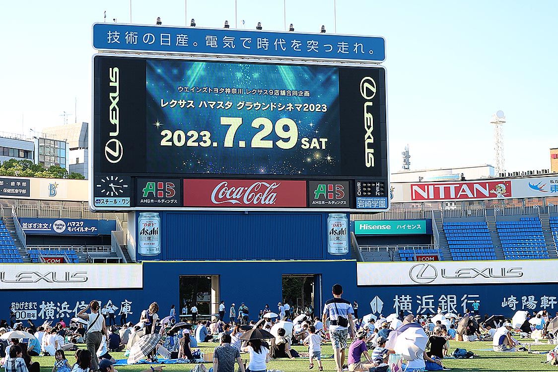 【横浜】ウエインズトヨタ神奈川(宮原漢二社長)は、横浜スタジアム(横浜市中区)を借り切り、「レクサス ハマスタ グラウンドシネマ2023」を開催した=写真。当日は、同社が運営するレクサス9店舗のオーナーやその家族ら790人が参加し、野外映...