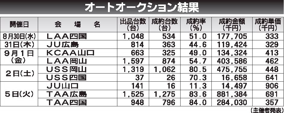 〈オートオークション結果〉中四国地区 2023/8/30~9/5