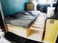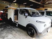 ベース車は新興EVメーカーのHWエレクトロ(蕭偉城=ショウ・ウェイチェン=社長、東京都江東区)の商用EV「エレモL」。内装には拡張可能なベッドのほか、冷蔵庫などの家電製品を標準搭載した。また、床材などは電費性能に配慮して、強度と軽量化を両立した資材を使用する工夫も行ったという。