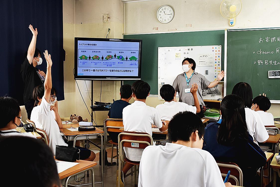 【横浜】ウエインズトヨタ神奈川(宮原漢二社長)は、横浜市立希望が丘中学校(横浜市旭区)の2年生全6クラスを対象に、数学一次関数の導入を担う出張授業を実施した。ガソリン車とハイブリッド車(HV)のコスト計算を通して、実用的な数学の捉え方を学...