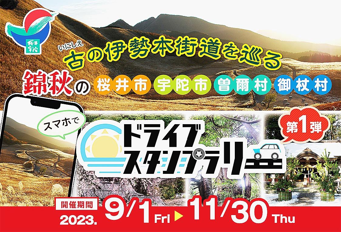 【奈良】日本自動車連盟(JAF)奈良支部(菊池攻支部長)は、桜井宇陀広域連合が主催する「古の伊勢本街道を巡る錦秋の桜井市・宇陀市・曽爾村・御杖村ドライブスタンプラリー」=写真=に協力する。スタンプラリーのシステム提供や開催PRなどを行う。...