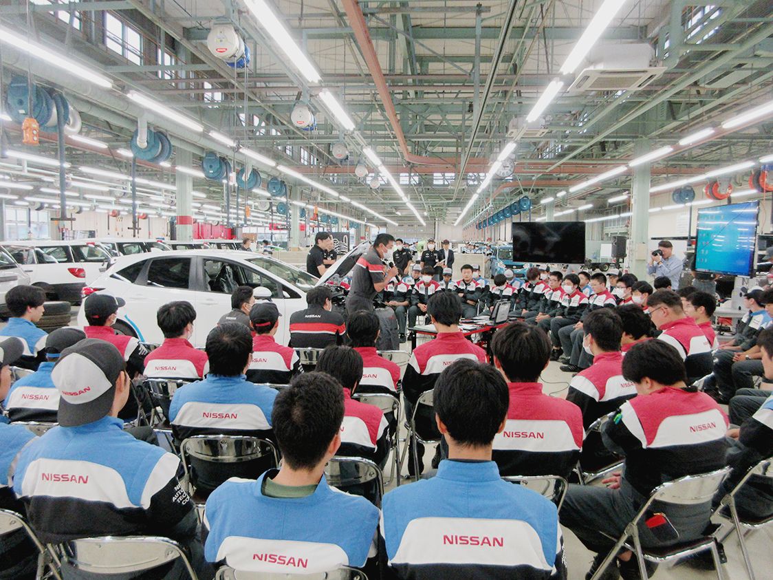【宇都宮】日産栃木自動車大学校(中村光之校長)は、一級自動車工学科の3、4年生約60人が参加して茨城日産(加藤敏彦社長)の渡邉純大さんと大久保悟さんを招いた特別授業を実習場で行った=写真。授業では、故障個所を診断し、修理するまでの過程を実...