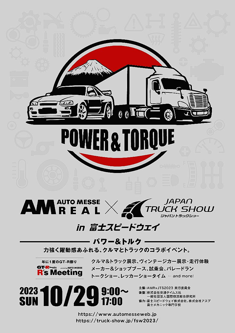 「ジャパントラックショー」の派生イベントとして29日に富士スピードウェイ(静岡県小山町)で開催される「ジャパントラックショー in Fujispeedway 2023」(国際物流総合研究所主催)のイベント内容が決定した。サーキットコースでは、運送事業者などが自社のトラックを走らせる「パレードラン」や加速力を競う「スタートダッシュチャレンジ」を実施。さらに自動車メーカーなど37社がの主力モデルや架装車、部・用品を出展するほか、欧州の流行を取り入れたカスタマイズトラック「ユーロカスタム」の展示を行う。