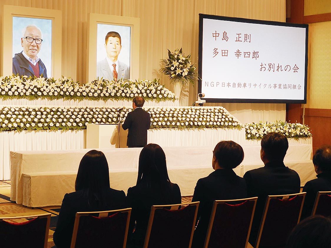 NGP日本自動車リサイクル事業協同組合(小林信夫理事長)は23日、オートリサイクルナカシマの故中島正則会長と、多田自動車商会の故多田幸四郎会長のお別れの会を都内のホテルで行った。中島氏はNGPの前身に当たる西日本グッドパーツの立ち上げに携...