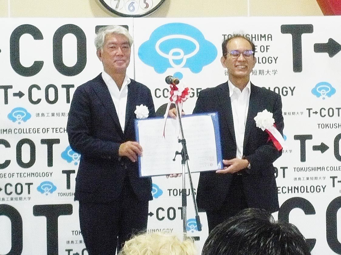 【徳島】日本自動車連盟(JAF)徳島支部(北島義貴支部長)と徳島工業短期大学(多田博夫学長)は、交通安全の推進とモータースポーツ振興に関した包括連携協定を締結した=写真。 両者で締結した交通安全に関しては、同大学所有のeモータースポーツ機...