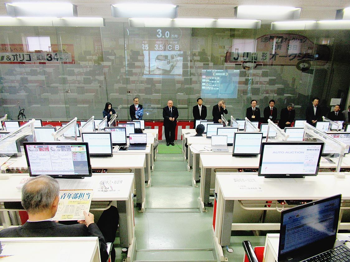 【山形】JU山形(鑓水孝理事長)は、山形県天童市の中古車オークション(AA)会場で「JU共有セリシステム・JUナビ接続10周年記念AA」を開催した。=写真。出品台数は目標の300台を超える338台を集め、競りは活況を呈した。 AA開催前の...