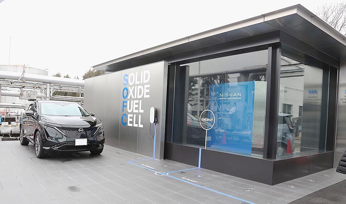 日産自動車は6日、バイオエタノールを使用した定置型発電システムを開発し、栃木工場(栃木県上三川町)で試験運用を開始したと発表した。システムに用いる固体酸化物形燃料電池(SOFC)の開発を進めるとともに、燃料の開発や製造にも乗り出す。2030年に栃木工場での本格運用を開始し、将来的には世界の生産工場で消費する電力の3割を同システムで発電した電力に置き換えることを目指す。