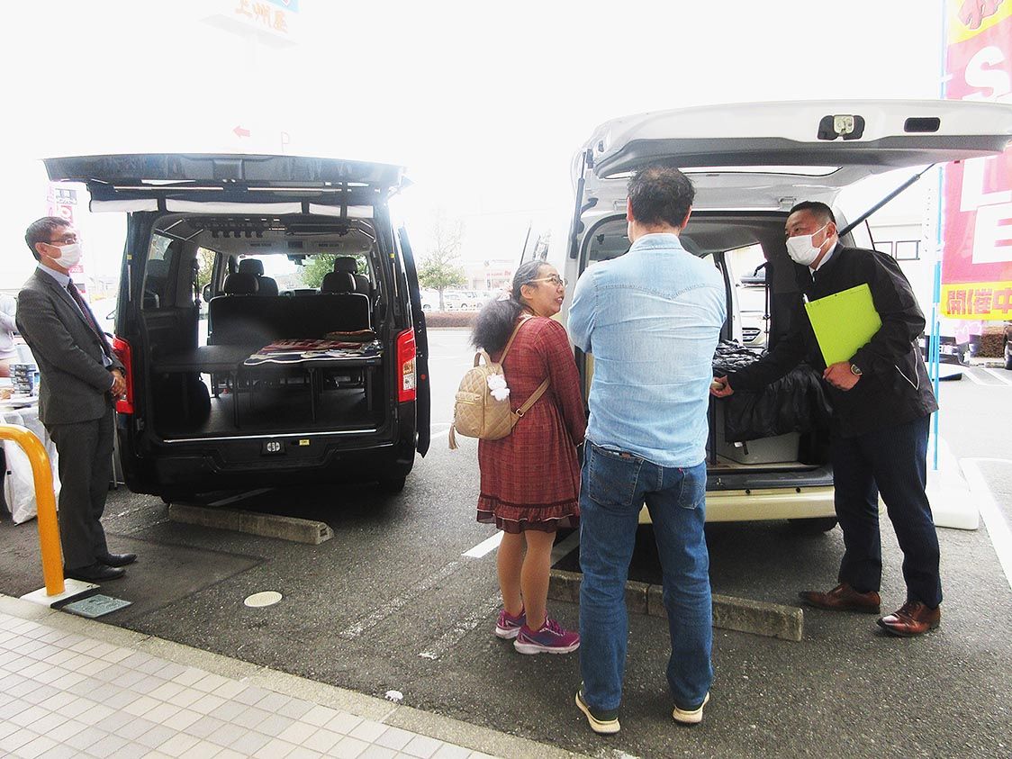 【宇都宮】日産プリンス栃木(澁谷浩昭社長)は、つり具の上州屋新真岡店(真岡市)で日産の車中泊シリーズを訴求する展示会を開催した。会場には日産「キャラバン」(マルチベッド仕様)と同NV200(同)を展示し、来店した釣りファンに訴求した=写真...
