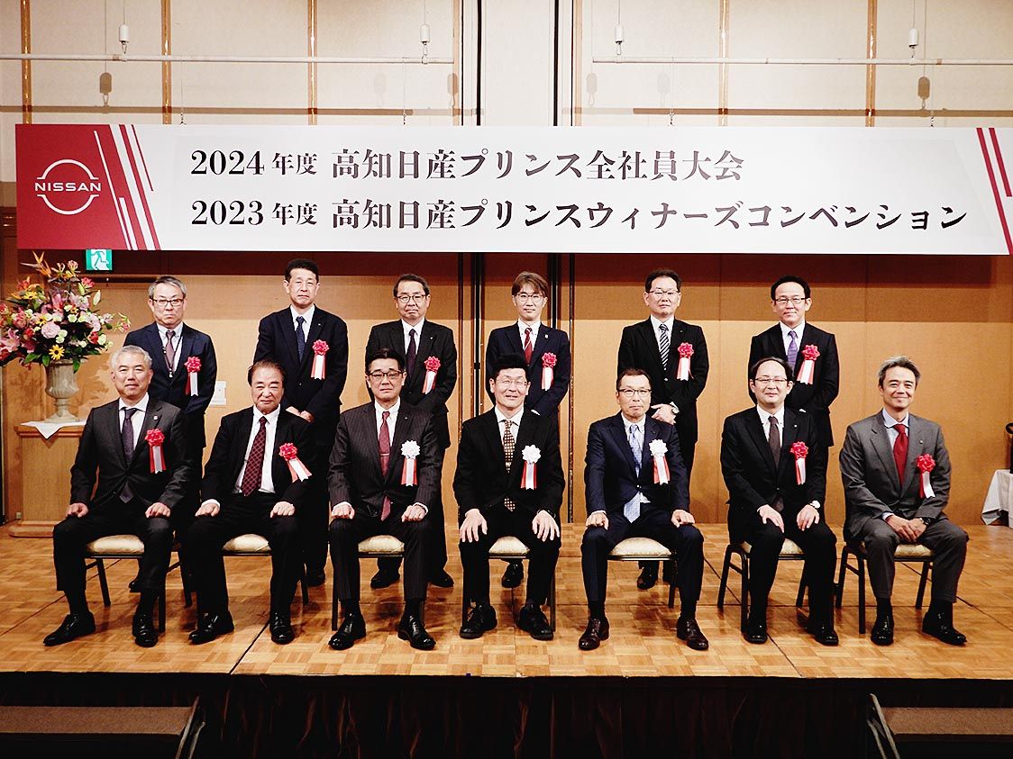 【高知】高知日産プリンス(臼井裕喜社長)は、高知市内のホテルで「2023年度ウィナーズコンベンション」と「24年度全社員大会」を開催し=写真、前年度に優秀な実績を収めた「カーライフアドバイザー(CA)」の表彰などを行った。実績向上で最も貢...