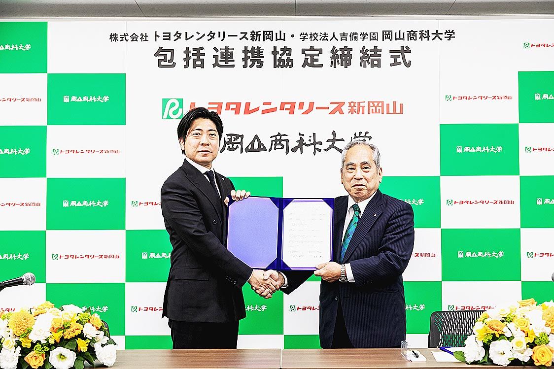 【岡山】トヨタレンタリース新岡山(末長一範社長)は、岡山商科大学と包括連携協定を締結し、地域貢献活動の推進に力を入れる。岡山商科大学は県内10の市町村と包括協定を締結し、地域から寄せられる課題や要望に対して学生と教職員が現地に赴き、地域の...