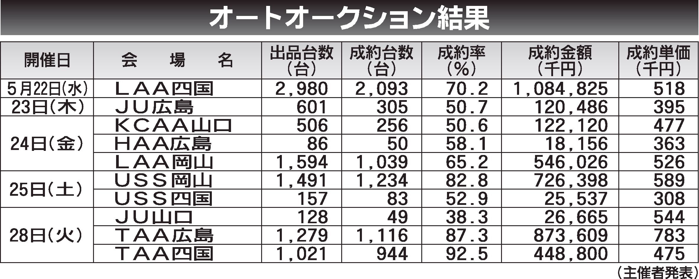 〈オートオークション結果〉中・四国地区 2024/5/22~28