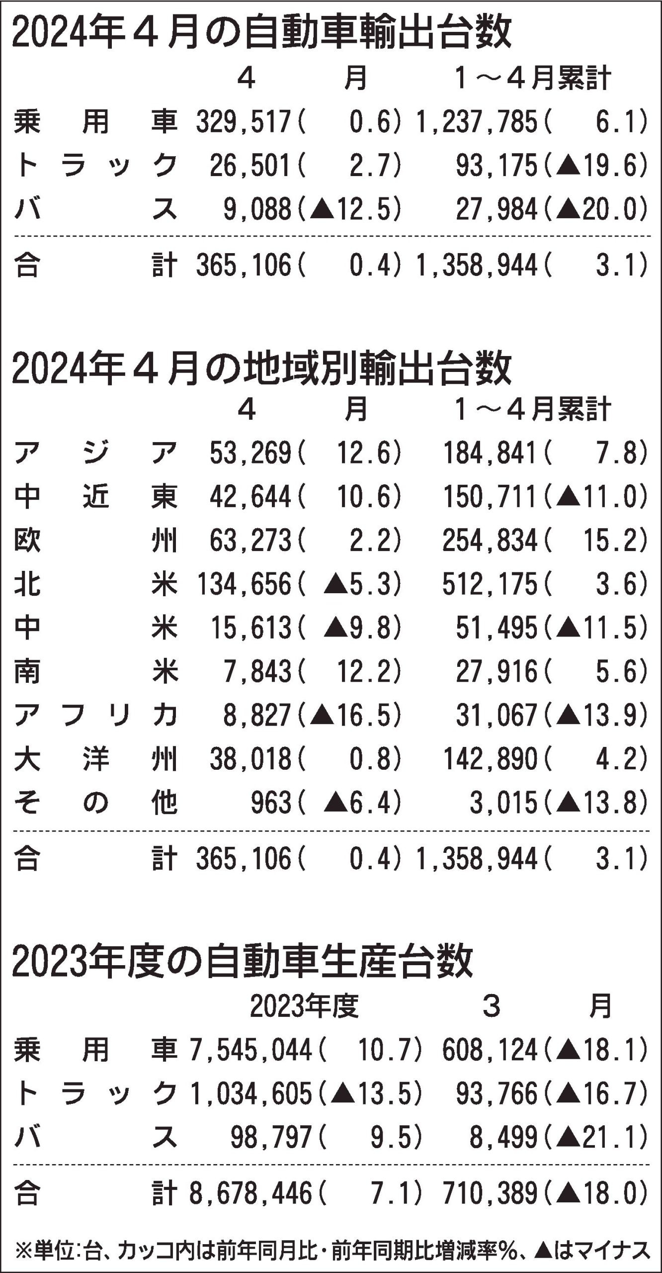2024年4月の自動車輸出、0.4%増で2カ月ぶりプラス 2023年度の国内生産は2年連続増加 自工会発表
