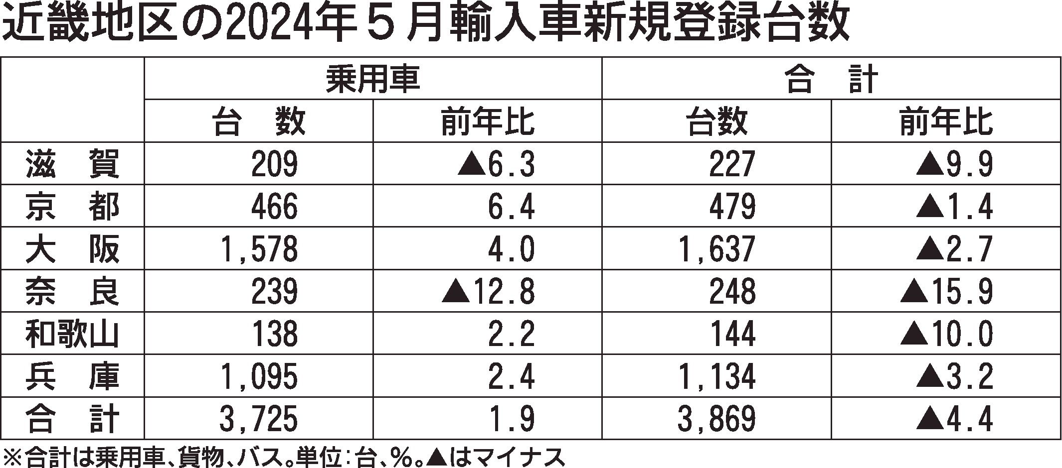 日本自動車輸入組合(JAIA)の発表によると、5月の近畿地区の輸入車新規登録台数(外国メーカー車と日本メーカー車)は、前年同月比4.4%減の3869台で3カ月ぶりにマイナスとなった。 乗用車は同1.9%増の3725台で、2月以降4カ月連続...