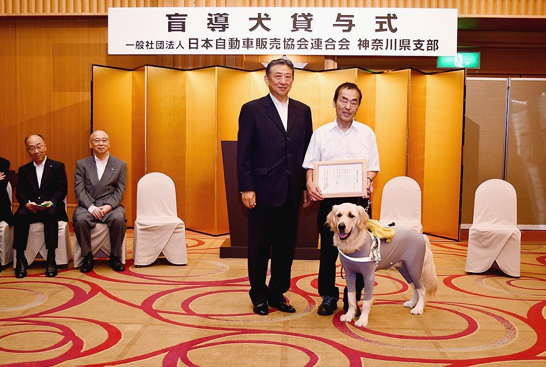 【横浜】日本自動車販売協会連合会(自販連)神奈川県支部(上野健彦支部長)は、横浜ベイシェラトンホテル&タワーズ(横浜市西区)で「盲導犬貸与式」を開催した。式典では、上野会長から川上正信さんにゴールデン・レトリーバー(オス)のファンタ号の貸...