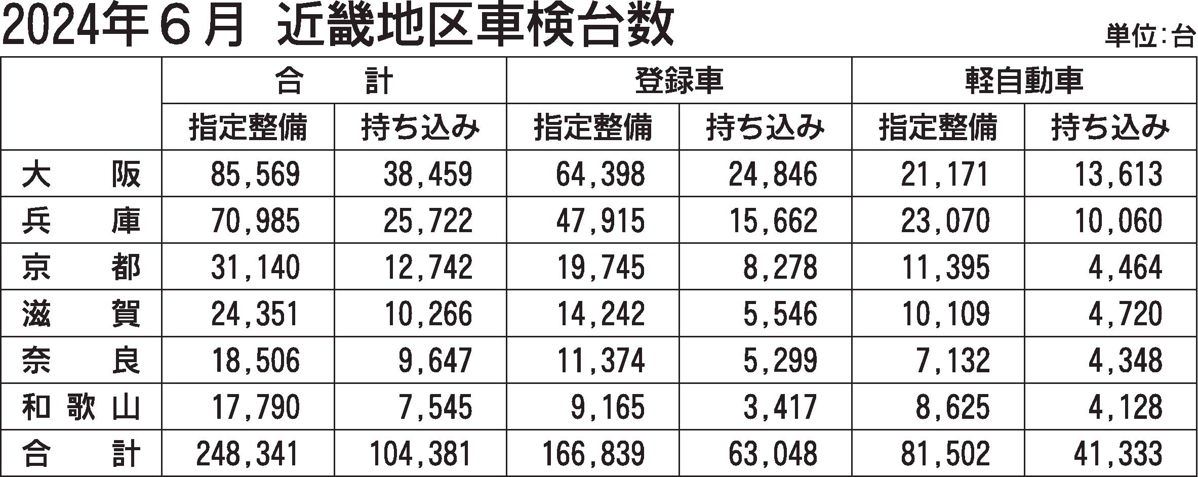 近畿2府4県の6月の継続検査(車検)台数(軽自動車を含む)は、前年同月比6.9%減の35万2722台で、2カ月連続で前年を下回った。登録車は同6.2%減の22万9887台で2カ月連続の前年割れ、軽は同8.3%減の12万2835台と3カ月ぶ...