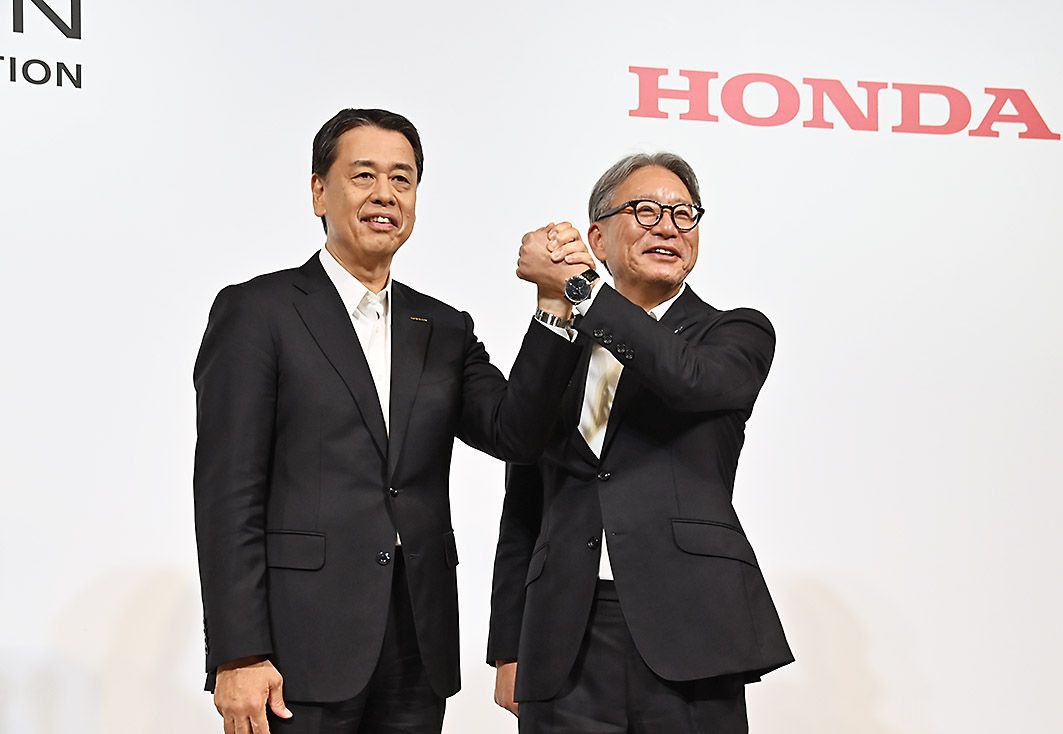 都内で実施した記者会見には、日産の内田誠社長と、ホンダの三部敏宏社長が登壇。会見の冒頭、しっかりと握手を交わした。