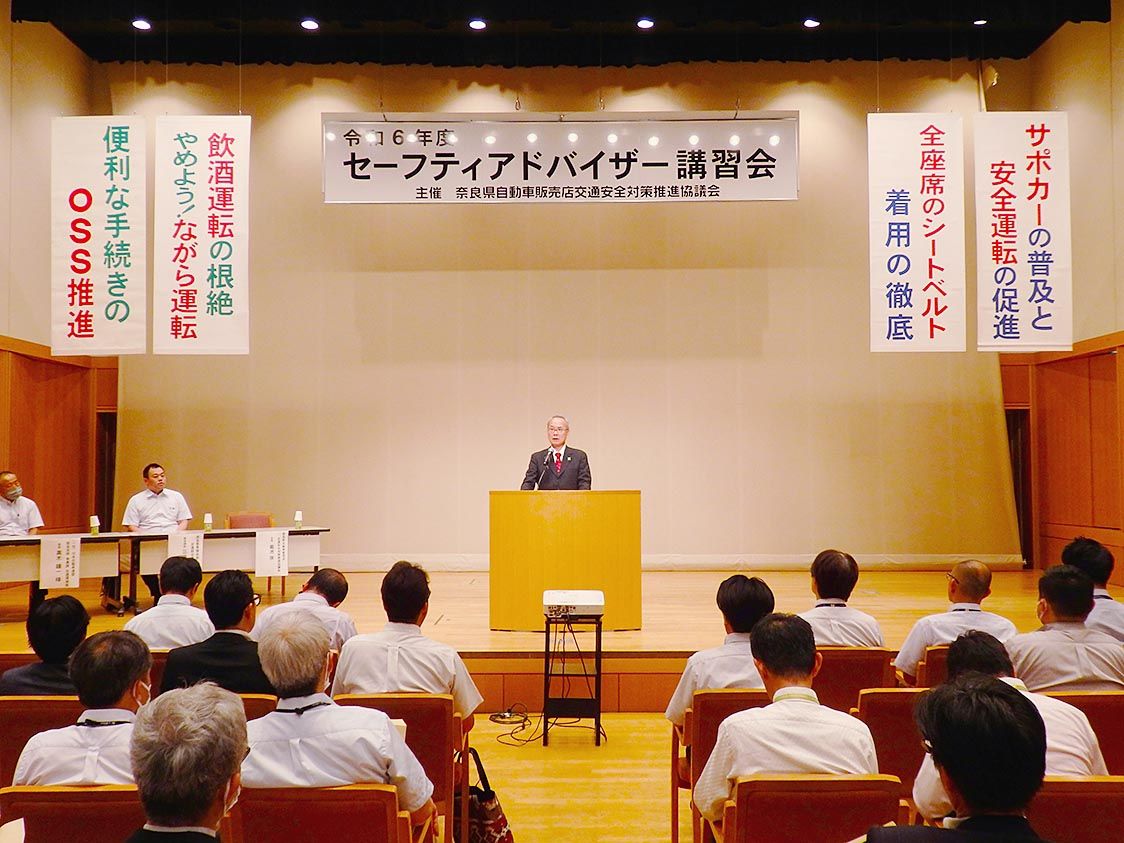 【奈良】奈良県自動車販売店交通安全対策推進協議会(菊池攻会長)は、いかるがホール(斑鳩町)で「令和6年度セーフティアドバイザー講習会」を開いた。交通安全の旗振り役を務める新車ディーラーのセーフティアドバイザーら約140人が参加し、県内の交...