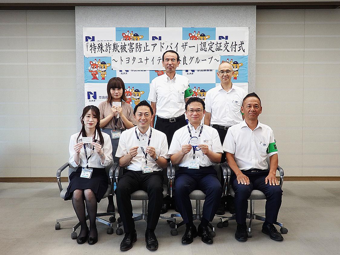 【奈良】トヨタユナイテッド奈良(菊池武之祐社長)グループは、地域における防犯や交通安全啓発への取り組みを強化する。活動の一環として、グループ社員99人が、奈良県警察が認定する「特殊詐欺被害防止アドバイザー」を取得した。 同認定制度は、県警...