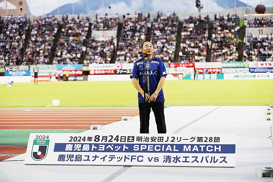 【鹿児島】鹿児島トヨペット(川邊安生社長)はオフィシャルトップパートナーを務めるサッカーJ2「鹿児島ユナイテッドFC」のホーム戦で冠試合「鹿児島トヨペットスペシャルマッチ」を開催した。当日は川邊社長が挨拶に立ち、地元クラブとサポーターへ、...
