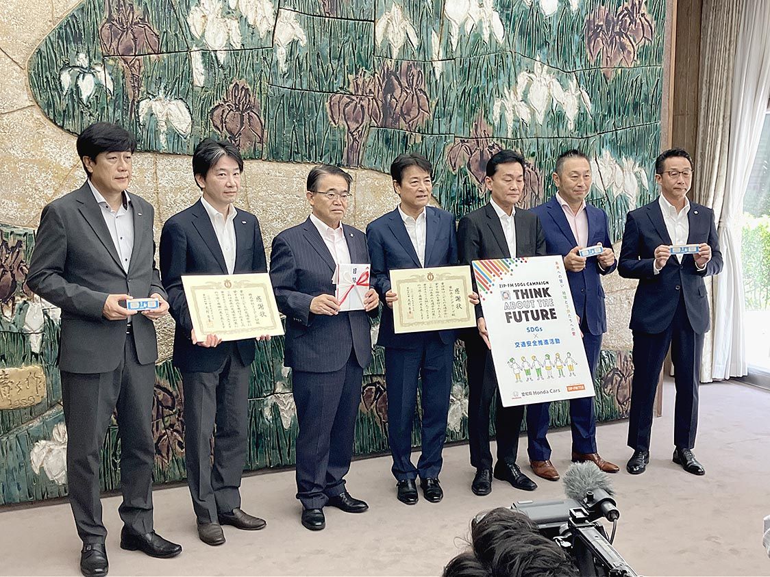 愛知県内のホンダ系ディーラーで組織する愛知県ホンダカーズとZIP―FM(浦出高史社長)は、子ども向けの交通安全啓発グッズを愛知県に寄贈した。両社が実施しているSDGs推進活動の一環。交通安全の標語が入った14㌢㍍の木製定規を県内の各小学校...