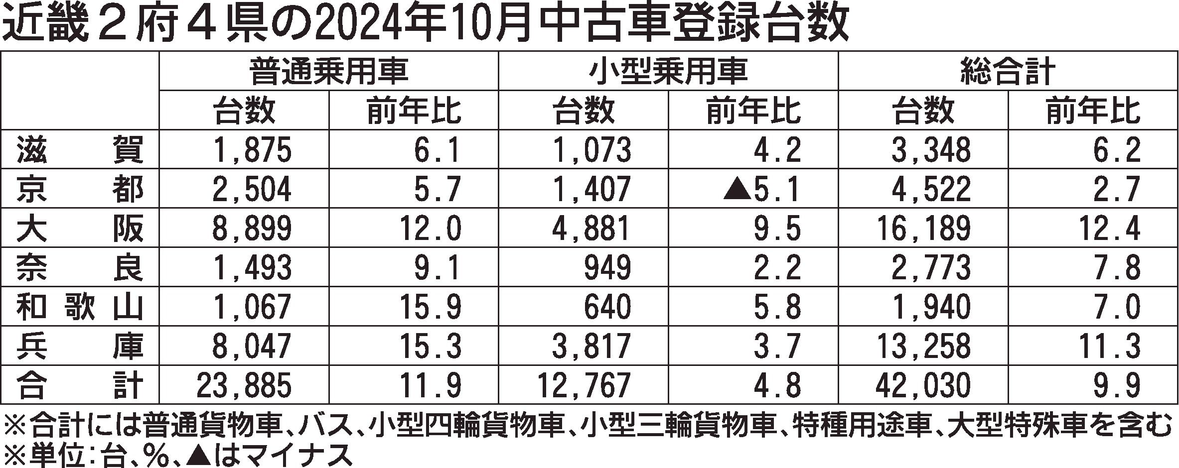 近畿2府4県の10月中古車、10%増の4万台超 3年ぶりの水準に