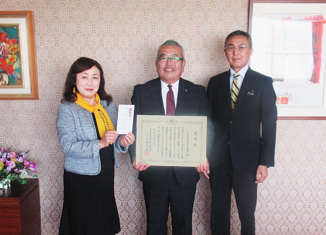 【青森】青森県自動車会議所(小野大介理事長)は、青森県交通安全母の会連合会(大坂美保会長)に20万円を寄付した。会議所で贈呈式が行われ、岡田雅人中古車委員長から大阪会長に寄付金を手渡し、感謝状が授与された=写真。 寄付金は、会議所が今年5...