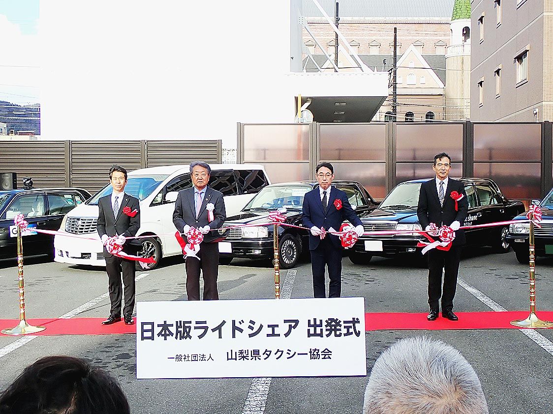 【甲府】山梨県タクシー協会(雨宮正英会長)は、甲府駅南口タクシー待機所で「日本版ライドシェア(自家用車活用事業)出発式」を開催した。2024年4月道路運送法の制度解禁で、県内で初めて許可を受けたタクシー会社5社が日本版ライドシェアの運用を...