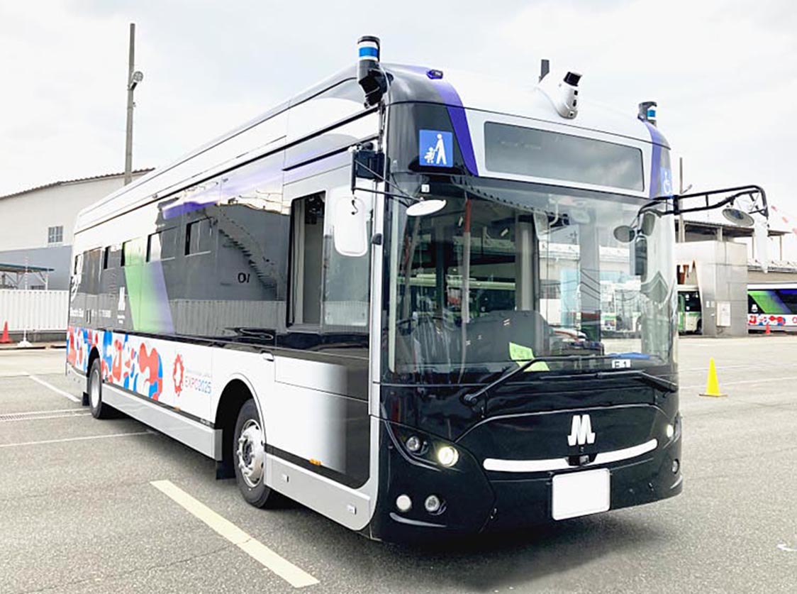 EVバスはEVモーターズ・ジャパンの「F8シリーズ2シティバス10.5m」をベースとし、先進モビリティの自動運転システム「ASM-AD」を搭載する。