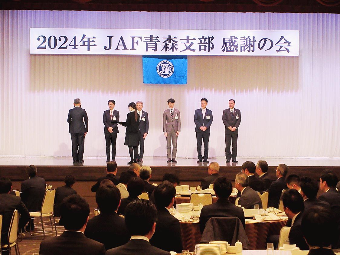 【青森】日本自動車連盟(JAF)青森支部(大野支部長)は、青森市で「2024年感謝の会」を開催した。24年のJAF新規入会キャンペーンで優秀な実績を残したディーラー、拠点や個人を表彰した。新規入会最多獲得優秀賞を獲得した青森トヨペットは4...